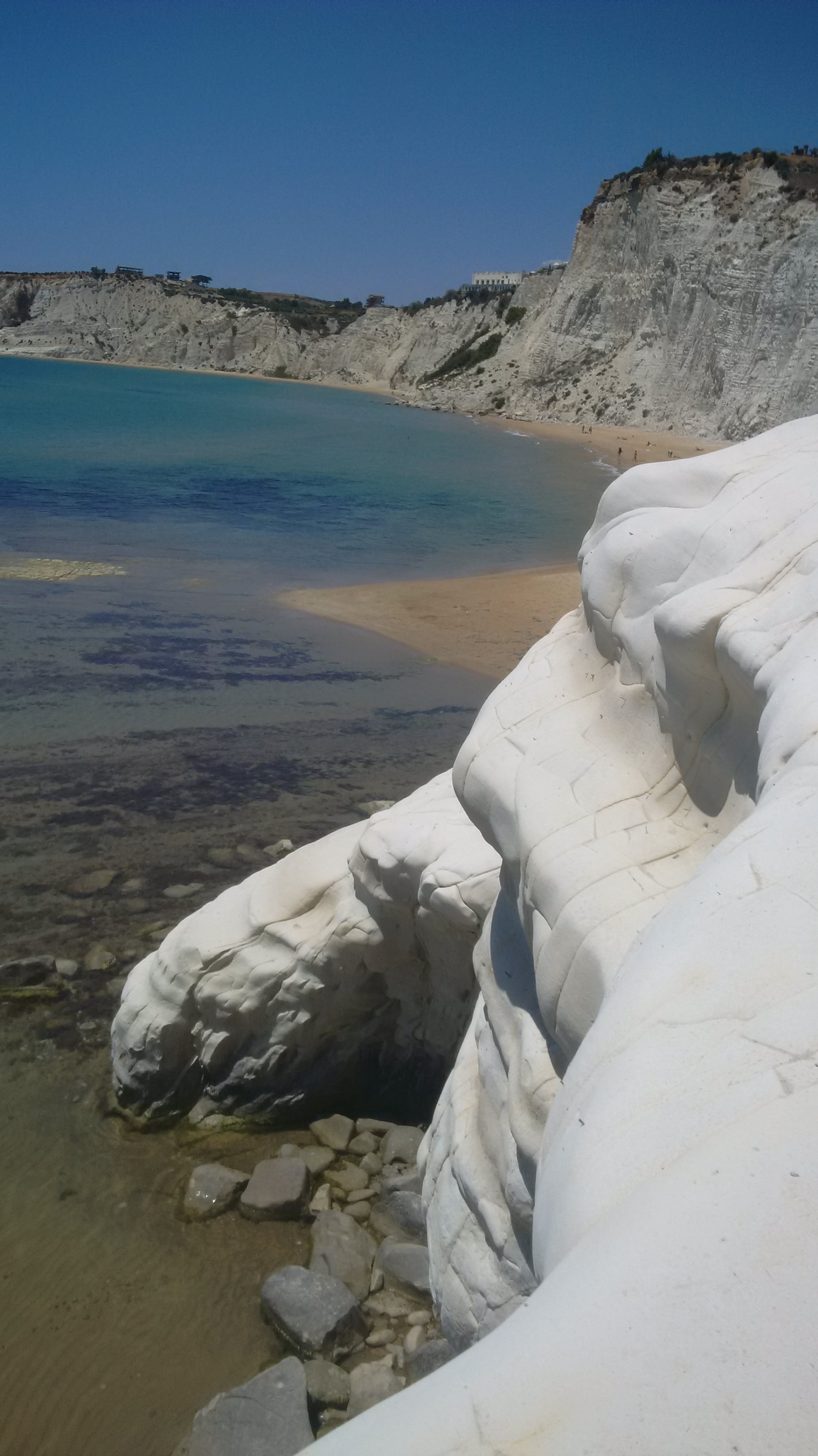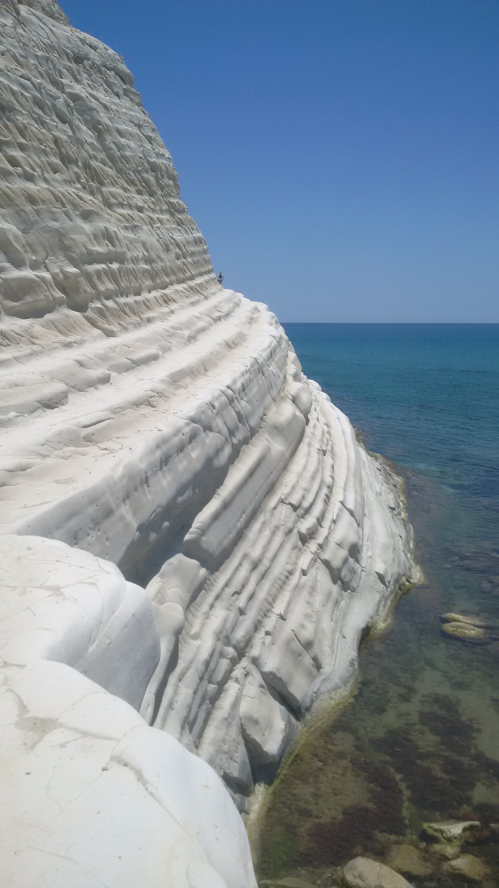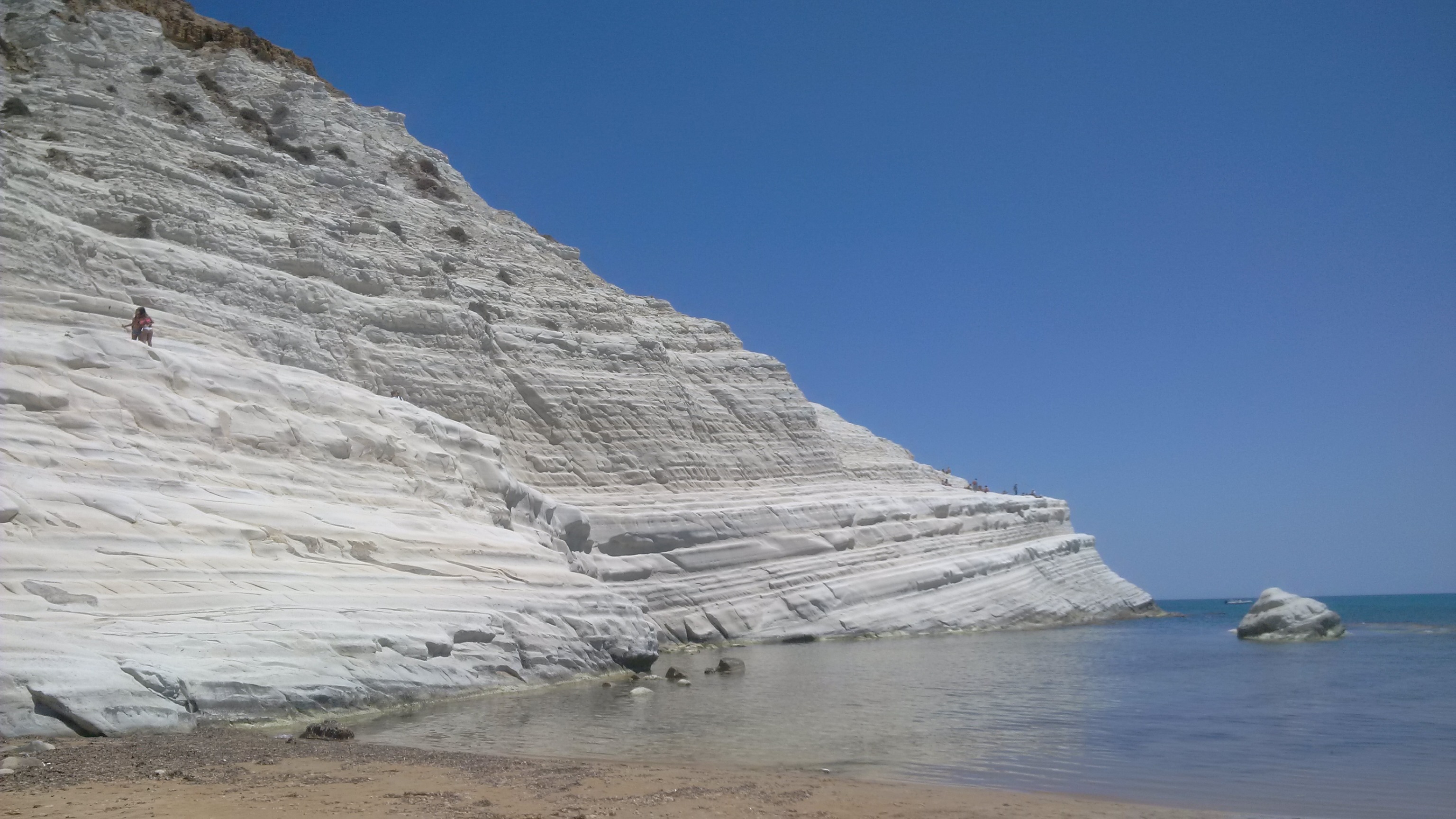 The Scala dei Turchi (Italian: „Stair of the Turks“) is a rocky cliff on the coast of Realmonte, near Porto Empedocle, southern Sicily, Italy. It has become a tourist attraction due to its unusual white color, as well as by its mention in Andrea Camilleri’s series of detective stories about Commissario Montalbano.